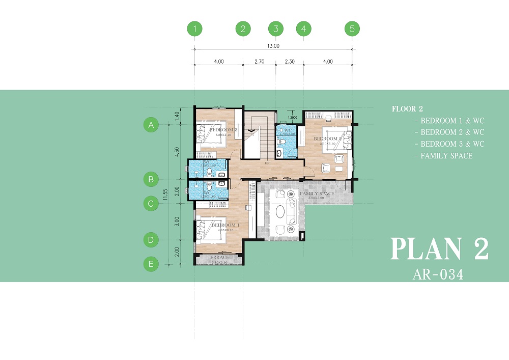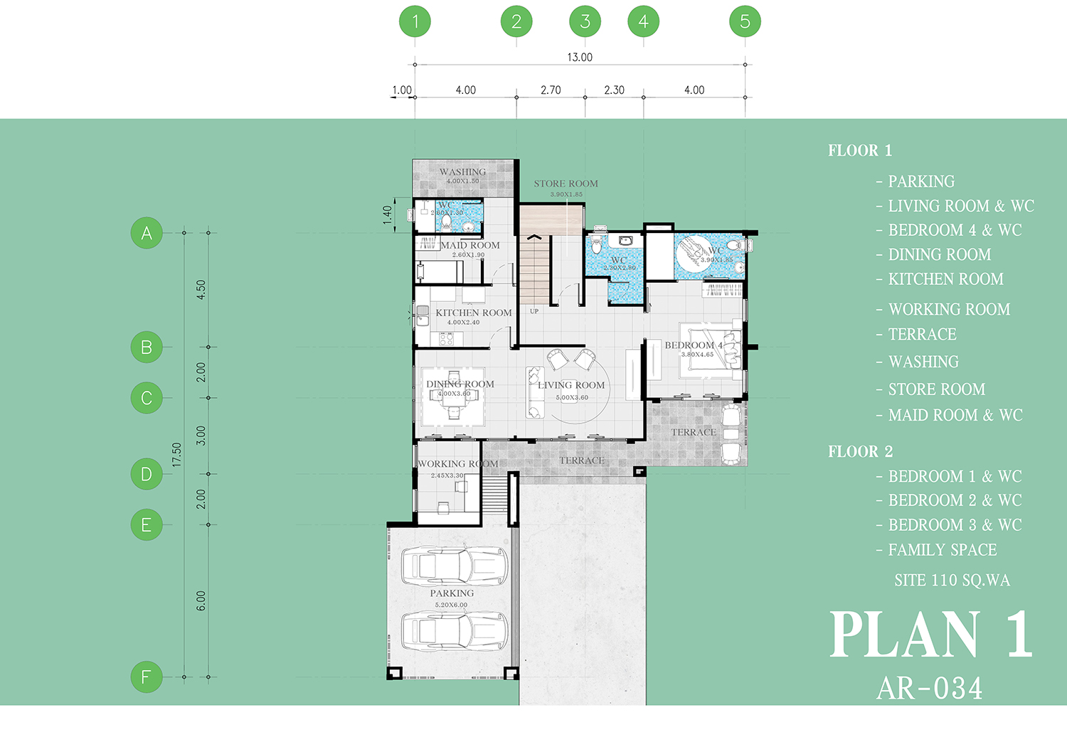 กว้าง 13.00 เมตร x ลึก 17.50 เมตร
