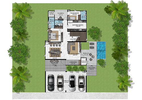 บ้านสีไขาวสไตล์โมเดิร์นมินิมอล 3 ชั้น ออกแบบตัวบ้านปิดซ่อนด้วยบล็อกช่องลมและระแนงสีขาว ด้านหน้าบ้านมีโซนพักผ่อนพร้อมสระว่ายน้ำส่วนตัว และโซนชั้น 3 ยังมีระเบียงพักผ่อนส่วนตัวยื่นออกมาจากห้องนอน Master เรียบง่ายมีสไตล์แต่ยังคงซ่อนความเป็นส่วนตัวได้อีกด้วย ภายในจัดวางฟังก์ชั่นไว้อย่างลงตัว ใช้งานง่าย