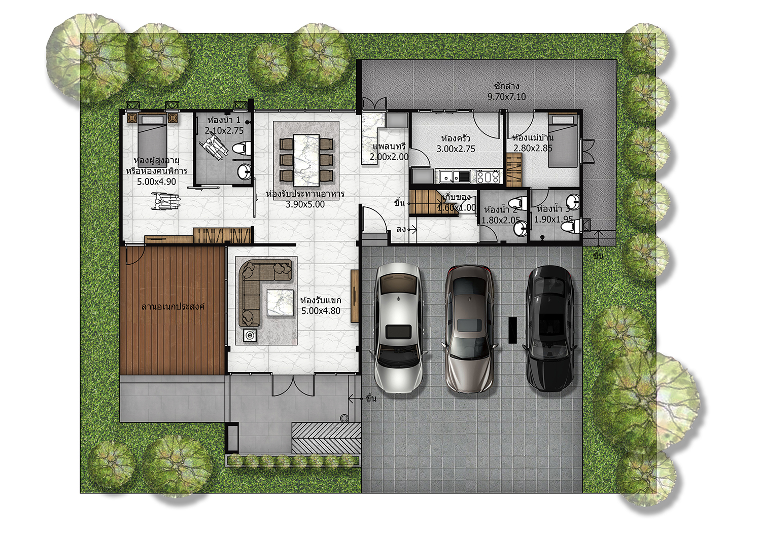 แบบบ้านชั้นเดียว STYLE MODERN ที่ครบด้วยพื้นที่ใช้สอยที่หลากหลายประโยชน์ สามารถ MIX USE การใช้งานได้อย่างเหมาะสม รับกับรูปลักษณ์ภายนอกที่ดูโดดเด่น ให้ความรู้สึกเหมือนได้กำลังพักผ่อนที่ POOL VILLA ส่วนตัว
