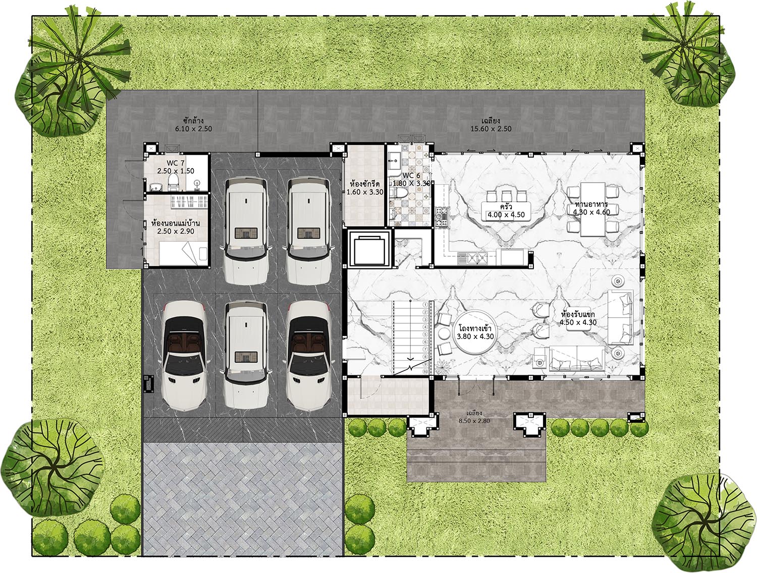 แบบบ้านเดี่ยว 3 ชั้น ในสไตล์ Palladian ที่รู้จักกันในชื่อ Paladio Style (สไตล์ปัลลาดิโอ) ผสมผสานความร่วมสมัย รวมถึงนำองค์ประกอบที่สื่อให้เห็นถึงความคลาสสิคของงานสถาปัตยกรรม ที่ให้เสน่ห์กลิ่นอายความหรูหราสุดคลาสสิคแห่งยุโรป ในรูปแบบใหม่ที่ไม่จำเจที่มีเส้นสายที่เป็นระเบียบและเรียบง่ายในบ้านที่มาพร้อมความลงตัวและความยืดหยุ่นของพื้นที่